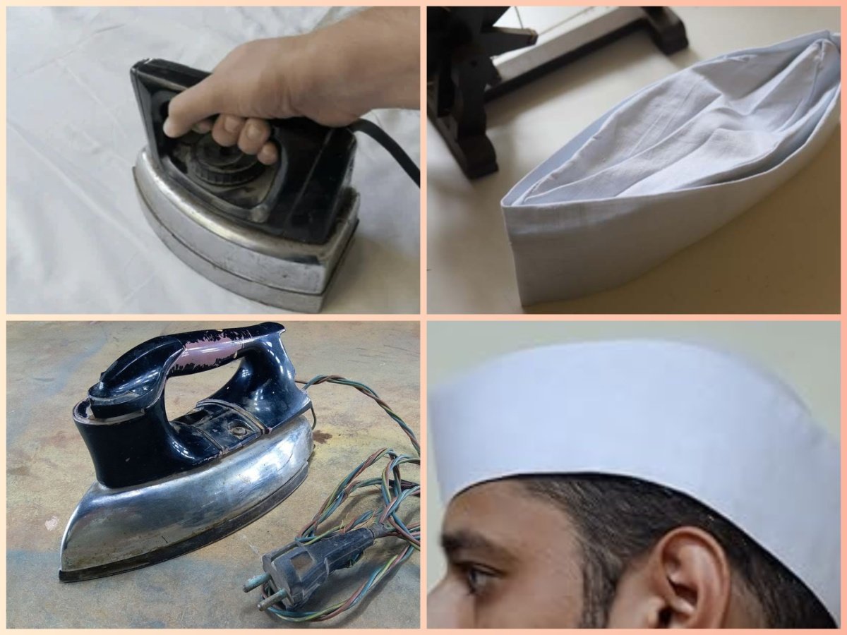 पांढऱ्या शुभ्र टोप्या ते घेऊन बसायचे… सगळ्या डझनभर… त्याला पाणी मारून ठेवायचे. टोपीला तीन घड्या असतात… मग एक एक स्टेप… त्या ओलसर टोपीवरून इस्त्री दाबून फिरवली की, अशी वाफ यायची! त्याचा एक वेगळाच वास असायचा. मग एक एक घडी… शेवटी पूर्ण दाब देऊन इस्त्री फिरवायचे. खास करून पुढच्या टोकावर… ते टोक खूप महत्त्वाचं.
