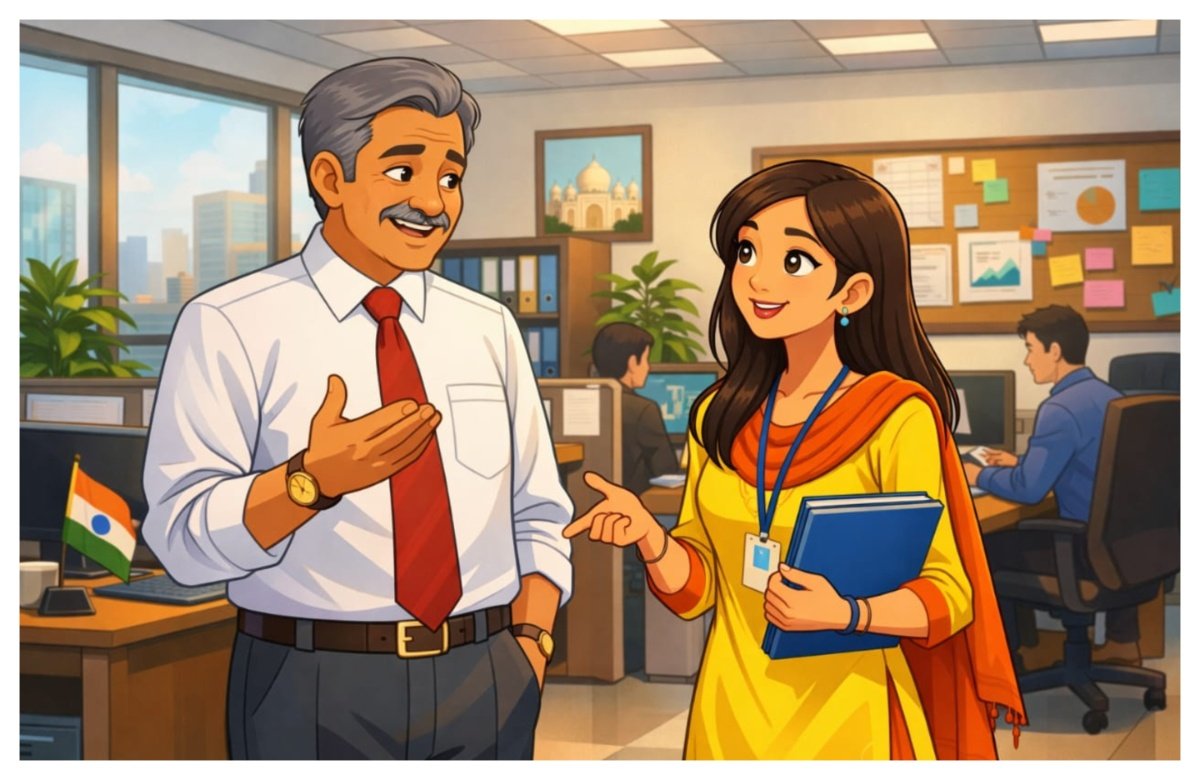 कारखान्यात राऊंड मारताना समीरने कंपनीच्या वर्कस् मॅनेजर राजला विचारले. “राज, अरे ती मुलगी नवीन दिसते, कोण आहे ती?”